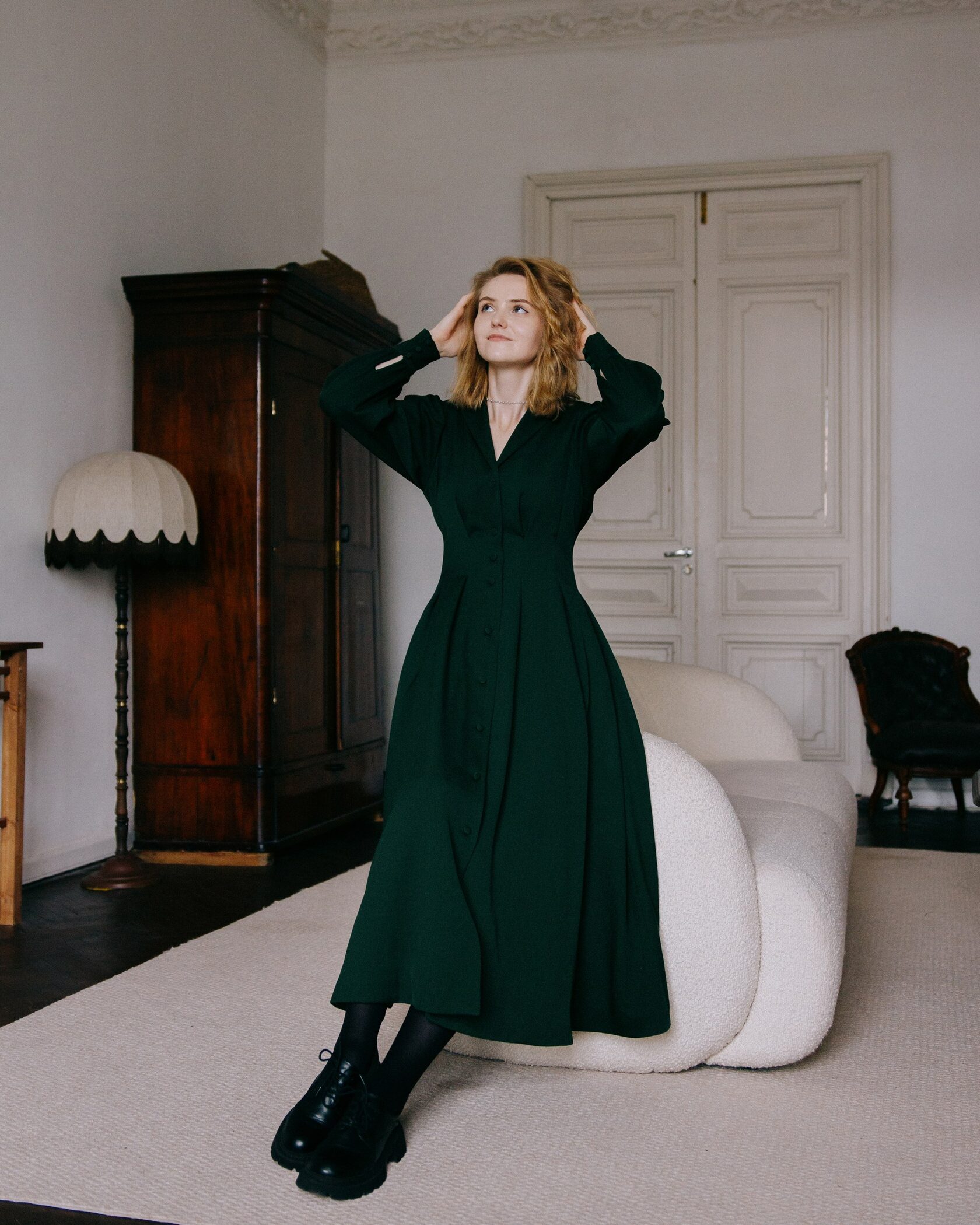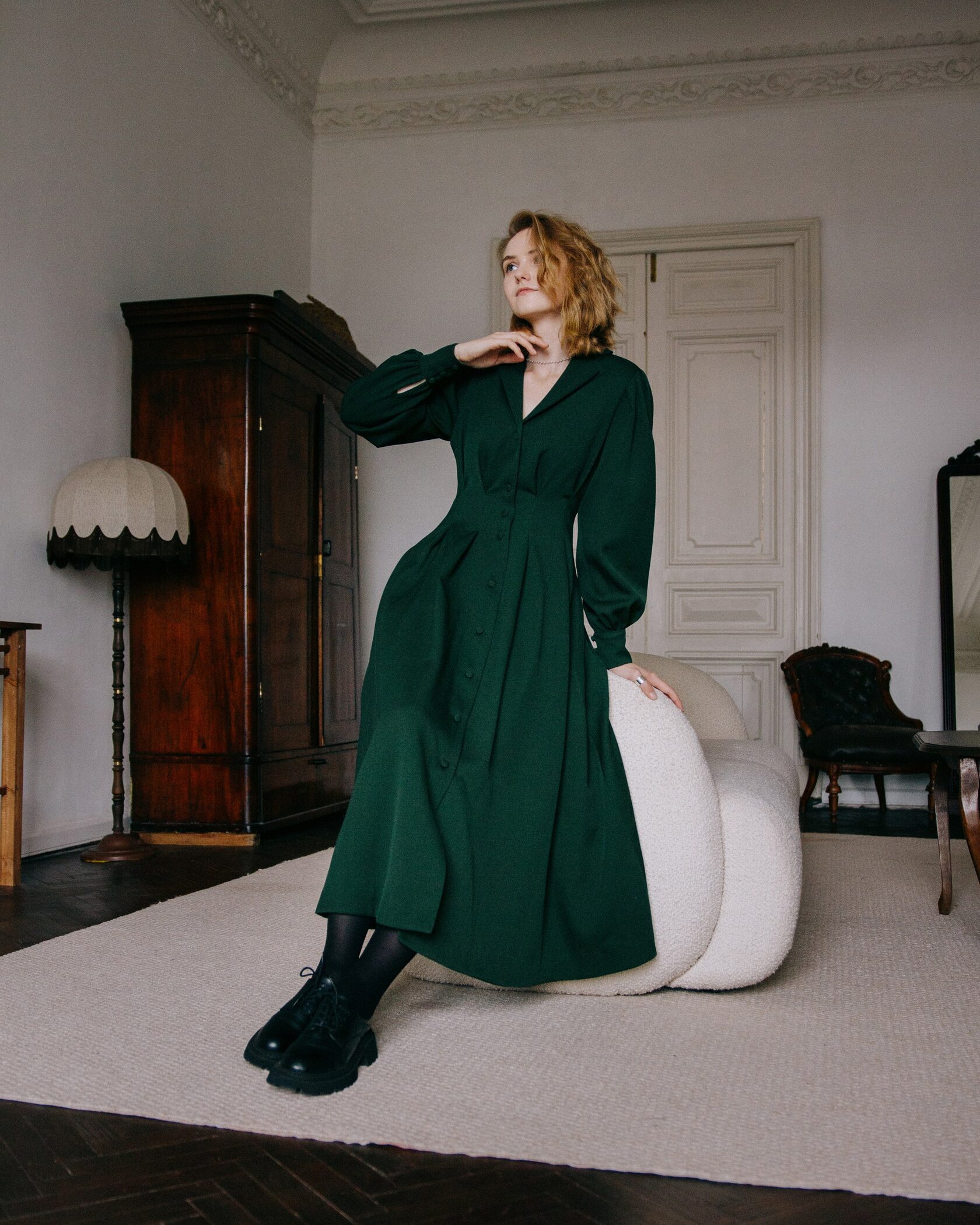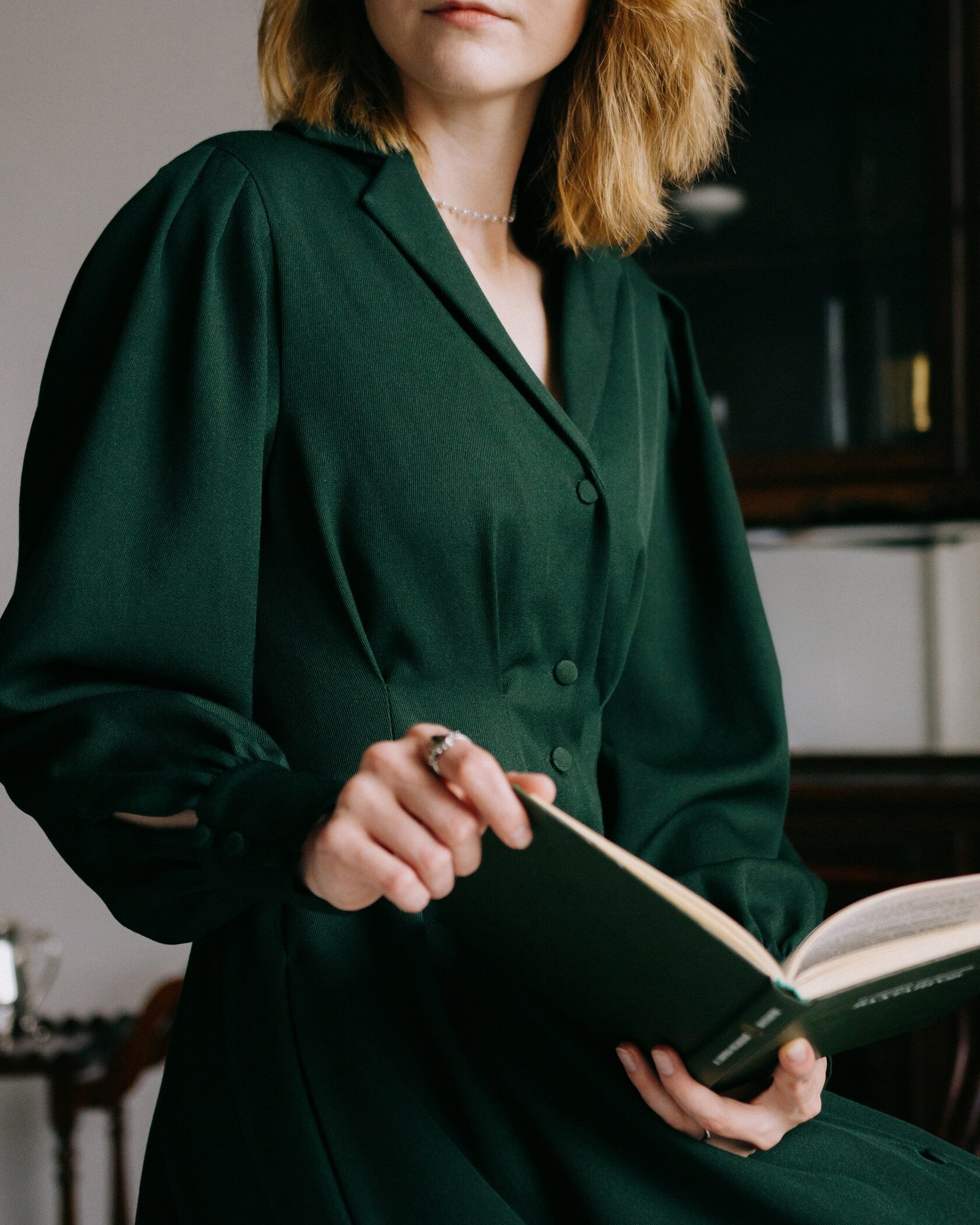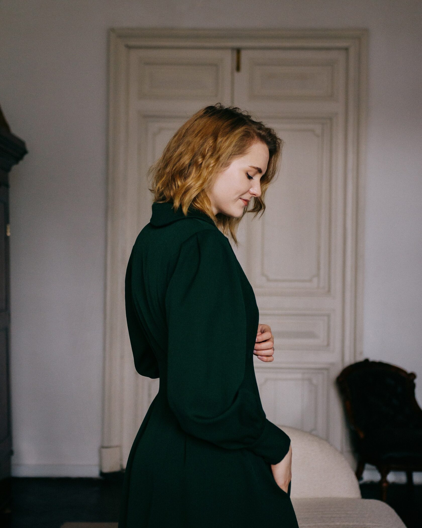 Детали Палто трапециевидного силуэта в оттенке хаки, с отрезной кокеткой по полочке и спинке, подплечники создают акцент в области плеч, на рукавах 2 встречные складки.