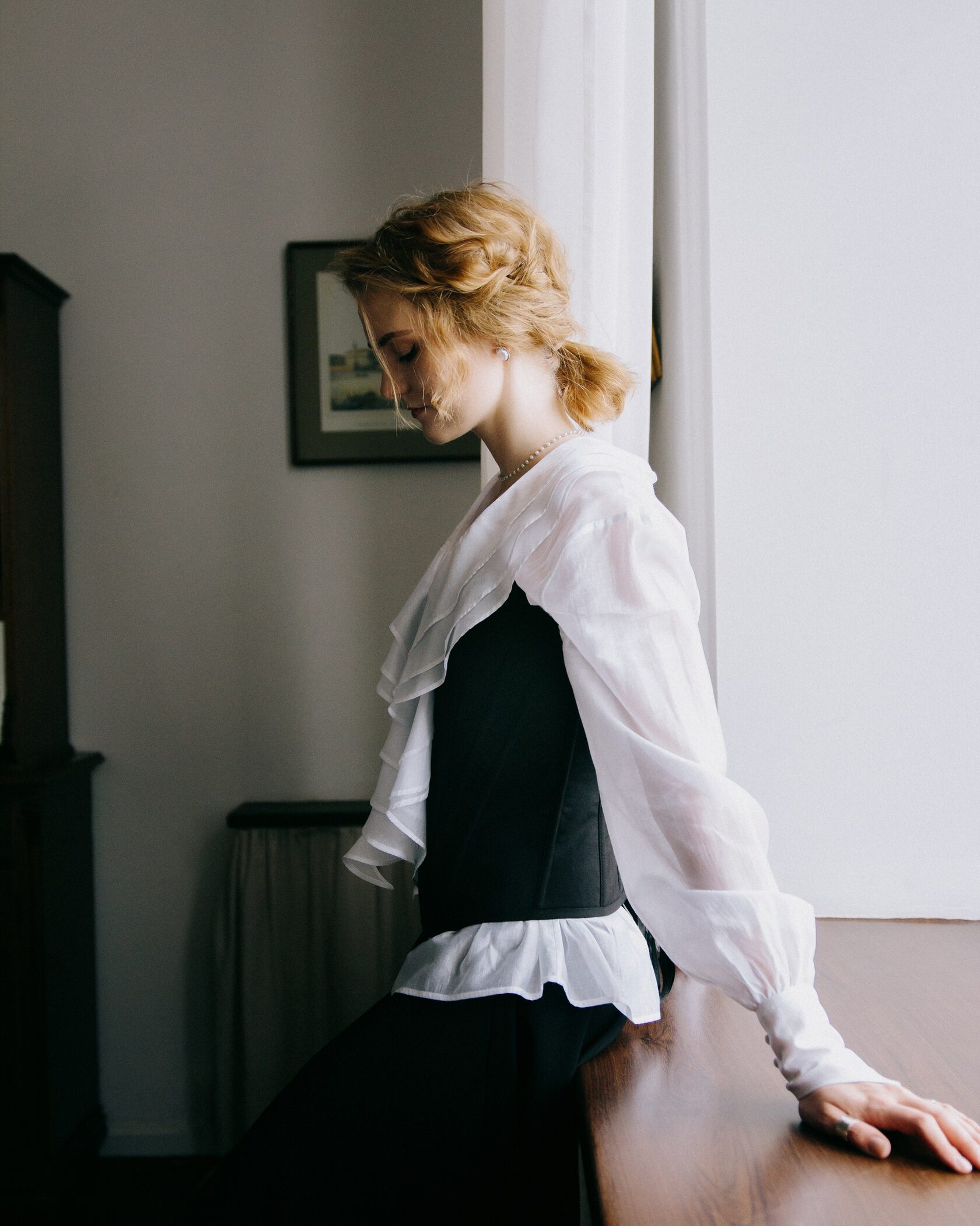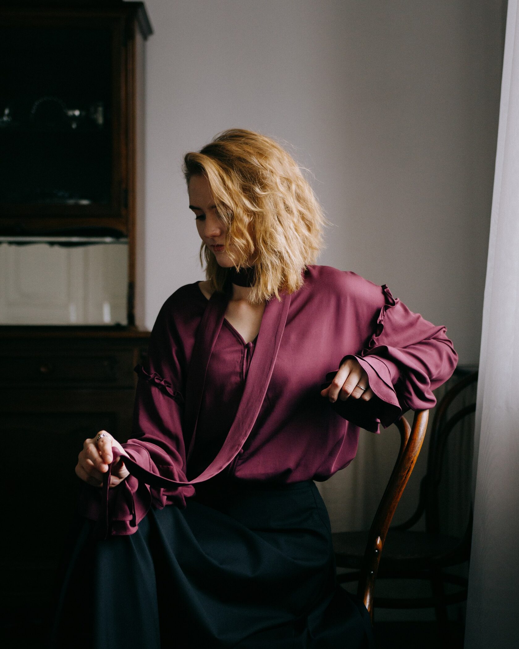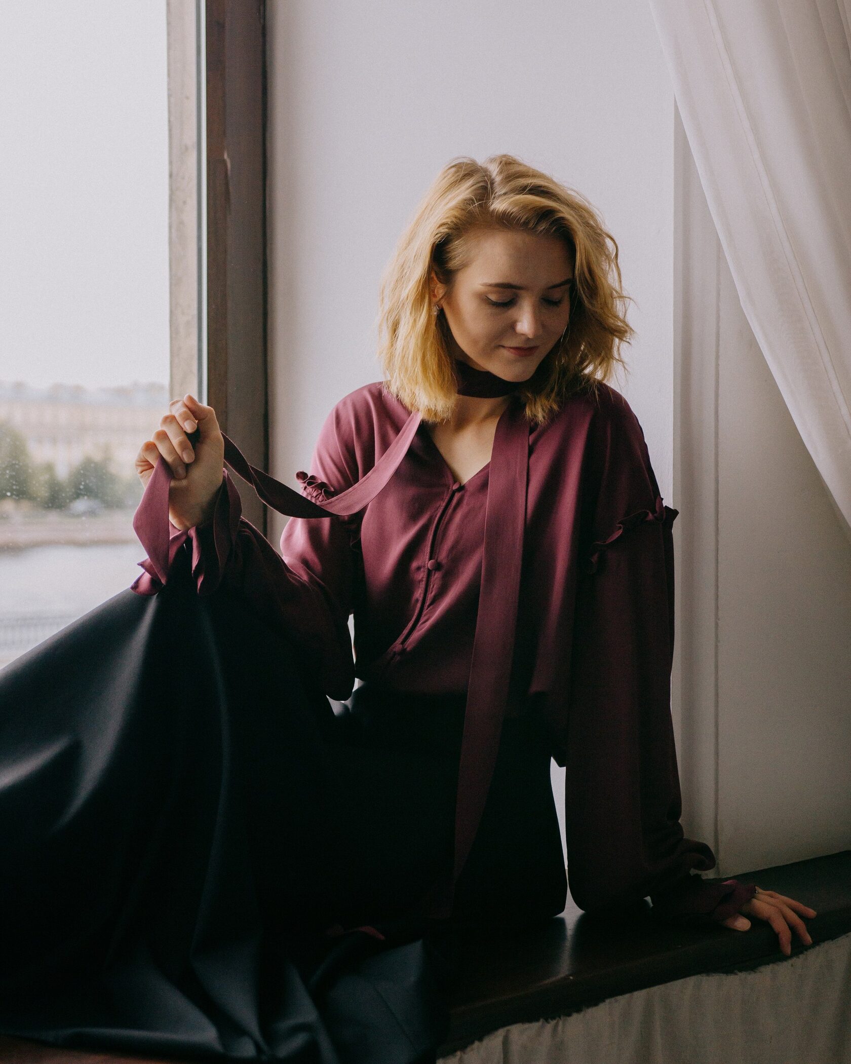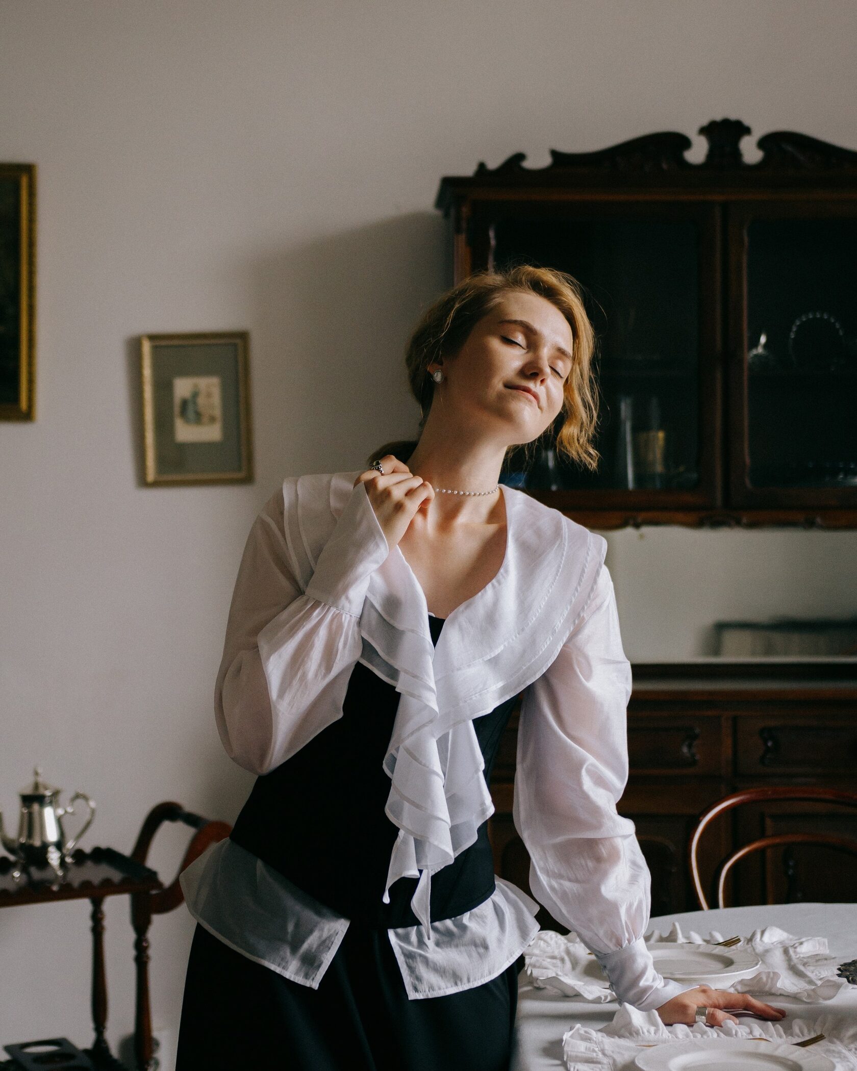 Самая чарующая, а вместе с тем популярная блуза первой коллекции. Легкость движения, невесомость, утонченность - все в ней.
