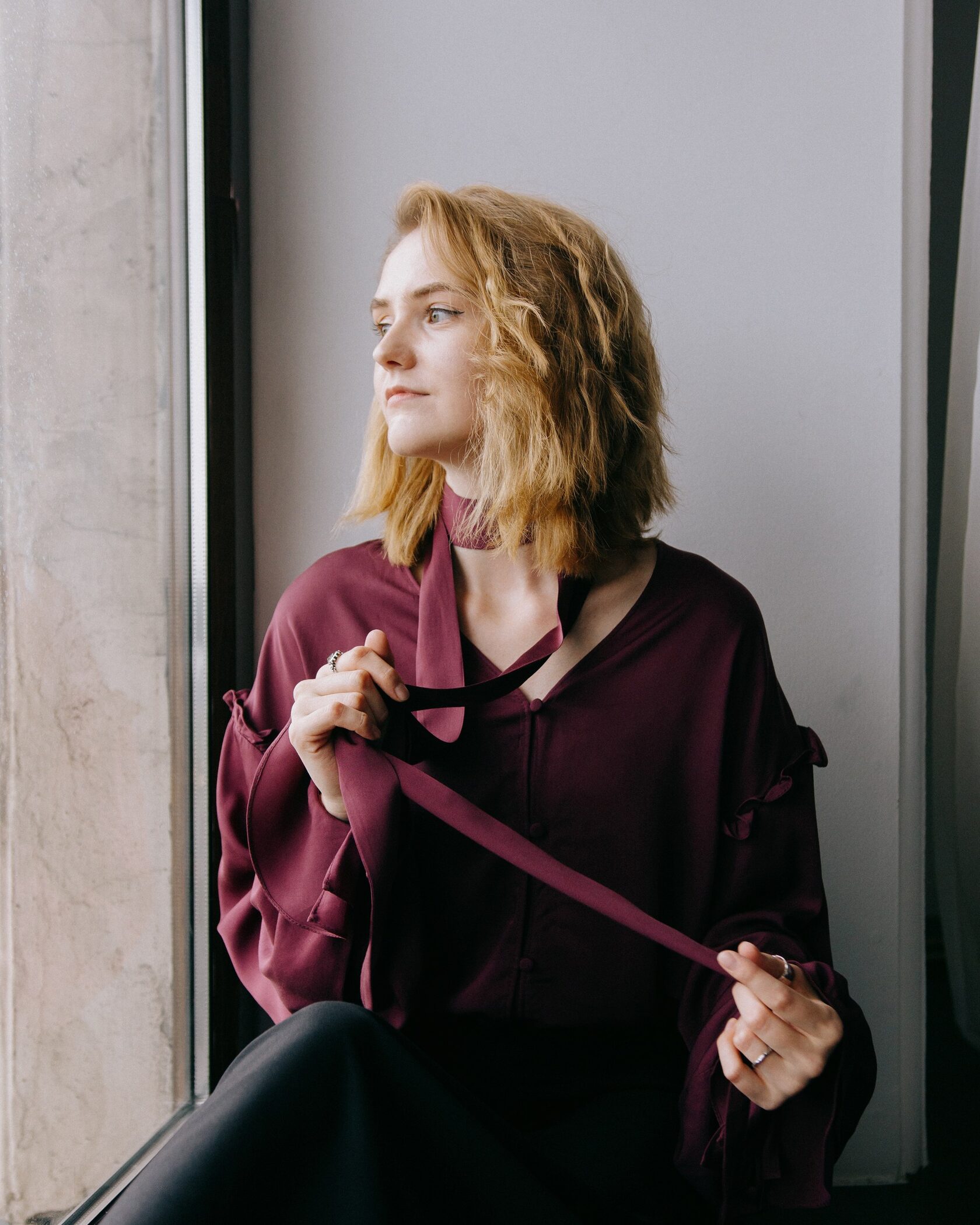 Акцентная, игривая блуза со съемным шарфом, который можно повязать на пояс, сделав акцент на талии. Вискозный шелк мягко струится и нежно охлаждает кожу. Идеальный вариант для первого свидания или похода в театр.